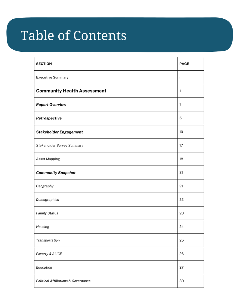We encourage residents, community leaders, organizational executives, and everyone interested to read this report about resident health including the community plan for addressing priority health needs.