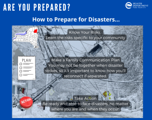 A component of local health department responsibility to promote and protect the health of their residents is the planning for and responding to health emergencies. Emergencies may be naturally occurring, accidents or deliberate acts. Examples include: