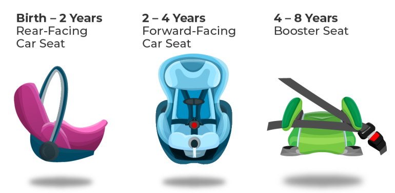 • All children under the age of 2 must ride in a rear-facing car seat