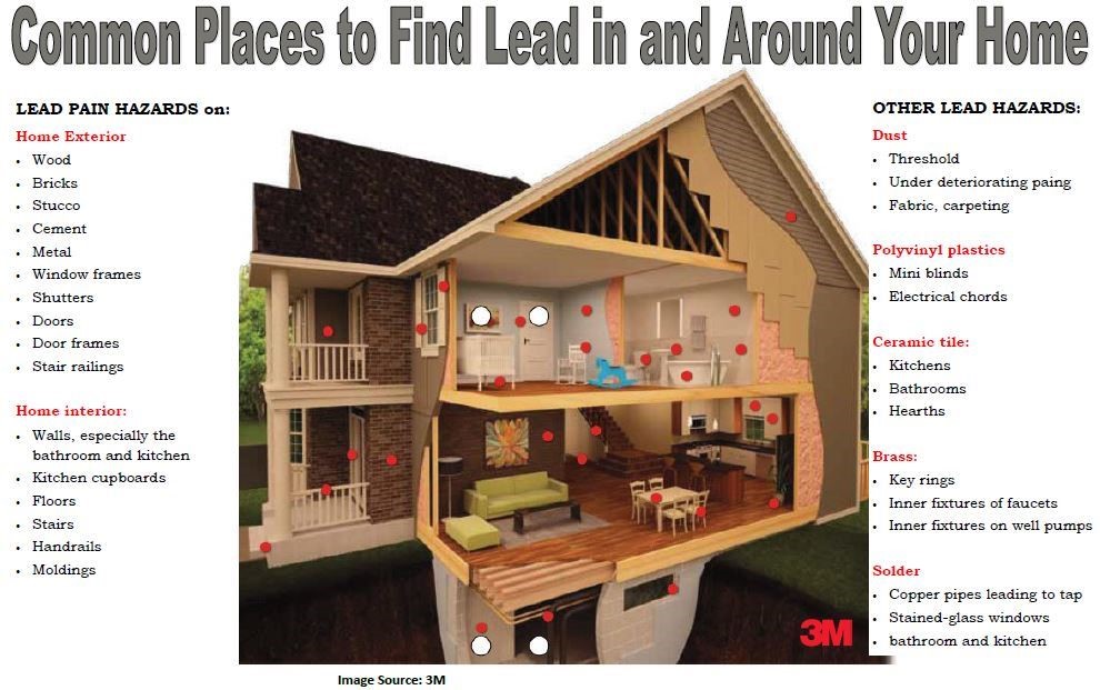Lead-based paint and lead contaminated dust are the most likely sources of lead exposure for our children. Houses built before 1978 are likely to have some lead-based paint. The deterioration of this paint into chips or dust that are ingested (swallowed) or inhaled (breathed in) by children puts them at risk for lead poisoning.