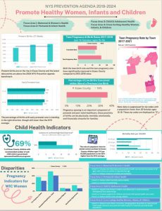 From 2015-2020, Essex and Clinton County Health Departments have collaborated on the NYSDOH-funded Creating Healthy School and Communities (CHSC) grant. In October 2015, the CHSC team started working with school districts, community based organizations, worksites, locally owned businesses, and municipalities to create a healthier environment for our counties. Together, we were able to make some significant changes because of all the partners we met along the away who remain committed to creating healthier communities. The Essex County Health Department Chronic Disease program is still available for assistance. These infographics show the successes CHSC accomplished in collaboration with community partners.